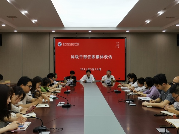 为进一步加强科级干部的教育培养,根据《党政领导干部选拔任用工作条例》《衢州职业技术学院干部选拔任用暂行办法》《衢州职业技术学院内部工作机构设置及人员配置优化方案》等文件精神,5月14日上午,我校举行了科级干部任职集体谈话。校党委副书记王东升、纪委书记章加春进行集体谈话。会议由校党委委员、组织部部长徐浪静主持。
